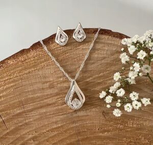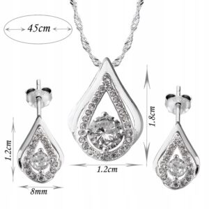 Elegantiškas 925 sidabro rinkinys – kubinio cirkonio lašai, vėrinys ir auskarai