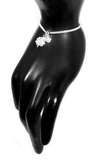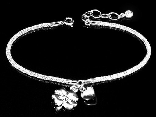 Sidabrinė apyrankė su madingais keturlapio dobilo, laimės simbolio, formos pakabučiais ir išgaubta, švelniai nugludinta širdele.