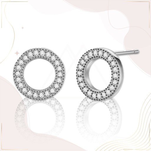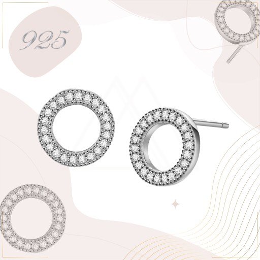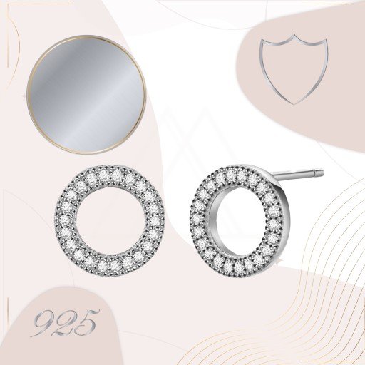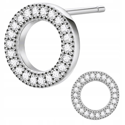 Sidabriniai auskarai, apvalūs su cirkoniu, 925 sidabras